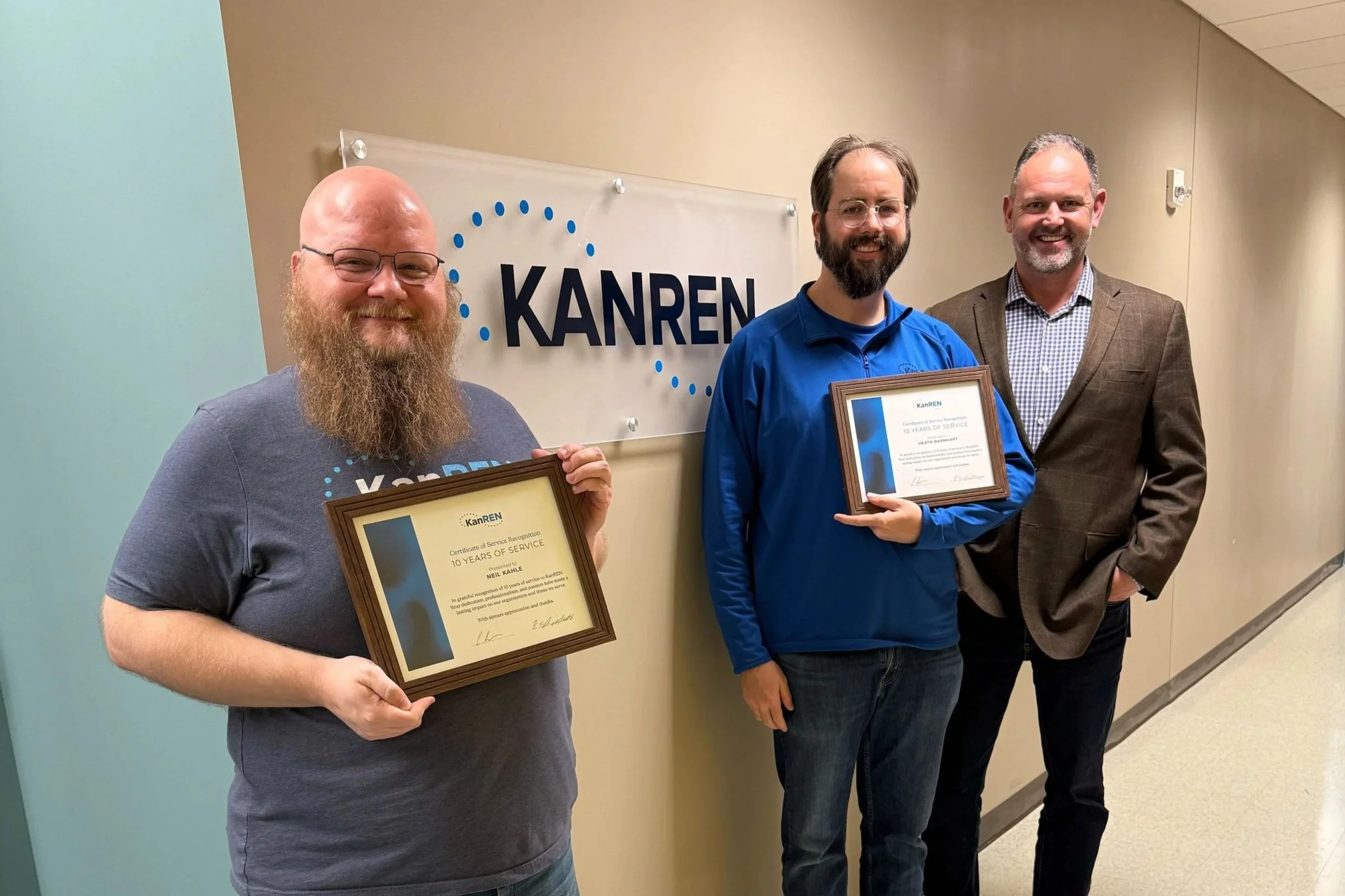 KanREN is proud to recognize Neil Kahle and Heath Barnhart as they celebrate their 10-year work anniversaries with the organization.